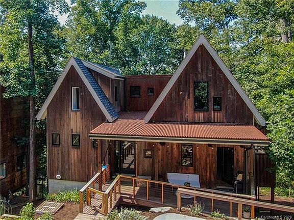 Beautiful 2018 architectural gem in convenient Montford Hills neighborhood. Greenbuilt NC Silver certification. Built by Green Light Builders and designed by Allen Currens of All Clear Designs. 5 BR 3 BA custom home which includes a lower level guest suite currently operated as a Homestay/Short Term Rental. Cypress Exterior with corrugated Corten accents. Custom metal and wood staircase, hand-built vanity in Main bath, site harvested poplar trim. Soaring vaulted living room with woodstove. Custom kitchen with ideal open layout for cooking and entertaining. Main level en suite bedroom/bathroom. Large covered front porch is ideal for covid-appropriate socializing.