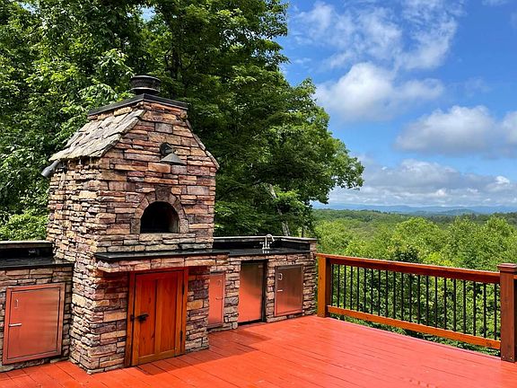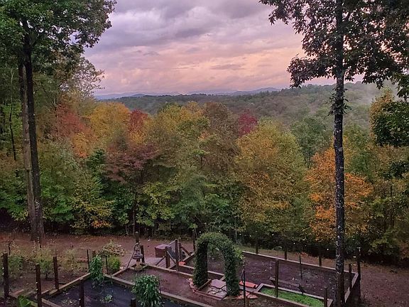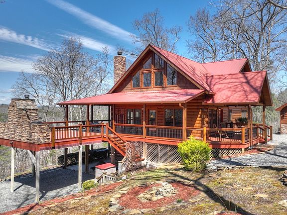 Price Improvement! Trying to check all the boxes? How about long-range mountain views, privacy, babbling brook, tiered garden, and 5 additional no maintenance lots surveyed and soil tested for future build? Need more? This property also has a well-maintained true log cabin with 4 bedrooms, 3 baths, an outdoor kitchen including a woodfired pizza oven on an expansive porch showcasing views of GA, NC & TN. The cabin features hardwood floors, floor to ceiling fp in the great room, gorgeous cabinetry made from local wood, tiled baths and showers, a gorgeous master with balcony, add'l fp in the basement, pool table and wet bar. Fully furnished. Also includes a detached 2-car garage, carport, landscaping galore. Builders, investors and homesteaders, this place may just be the slice of heaven you are looking for.