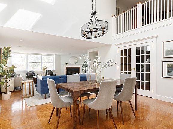 Nestled in Winchester Highlands, this expansive 3bed/2.5bath condo is the perfect combination of city living & suburban comfort. A grand foyer opens into a dining area with soaring ceilings & skylight. Step through double glass doors to the kitchen with new stainless steel appliances, ample storage & room for a breakfast nook or island. First floor is complete with a spacious living room with fireplace, a bedroom, half bath, & plenty of storage space throughout. Ascend to the 2nd floor with custom wooden built-ins on the landing & space for an at home office or cozy reading area. Just past the landing is the primary bedroom with en-suite bath, fireplace, & large windows. Rounding out this level is a third bedroom, large storage room, laundry closet, & second full bath with private sauna! Residents enjoy a shared tennis court & trail access to the Middlesex Fells Reservation. Unit includes two deeded parking spots. Easy access to the highway, commuter rail & Winchester Center.