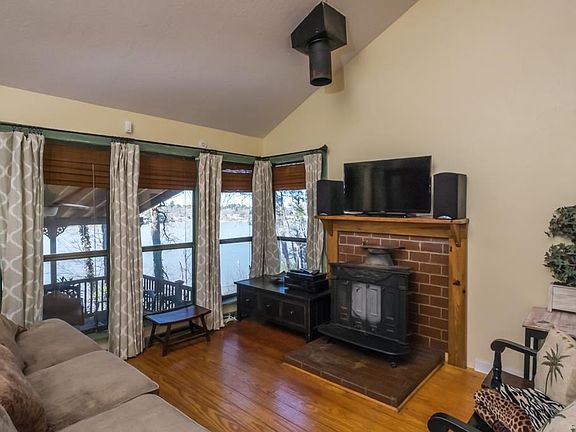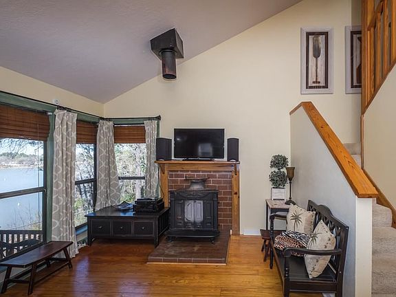 Great waterfront retreat! Two story home on 2 beautiful lots. Privacy fence. Great for outdoor entertaining! Beautiful stone fire pit area. Steps down to huge deck for more entertaining over the boat house. Perfect skiing lake! Master upstairs. Furniture stays. Wood burning stove and vaulted ceilings with open concept living. Loft for study or exercise room! Must see to appreciate! It sleeps 10 comfortably!