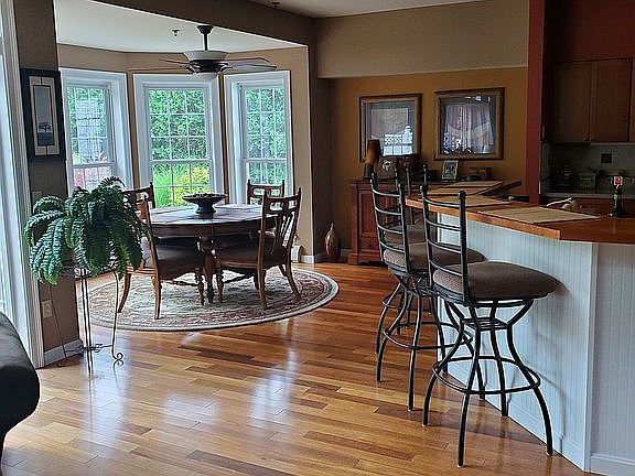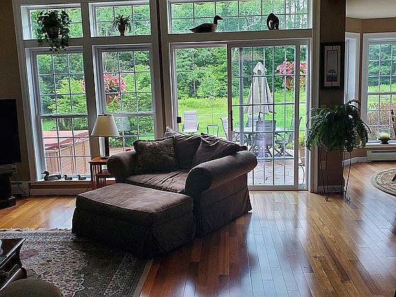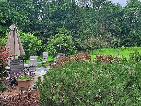 Features include 4 bedrooms with a sprawling master bedroom suite including an exercise room, sitting area and generous master bath. Hardwood throughout the majority of the first floor with a spacious, open kitchen featuring Corian and cherry tops; a large living area with fireplace, library, laundry and mudroom. Also has and oversized and deep 3 car garage and full basement with partial finish area that can be used for playroom, second living room or work space. House is fully sprinklered (fire protection) as well. The outside is meticulously maintained with landscaping and plantings along with walkways, patios, a custom firepit, outdoor shower, sunsetter awning, gas feed for grill and hot tub. There is also a natural spring fed 12 zone irrigation system that serves the entire lawn, plants and gardens.