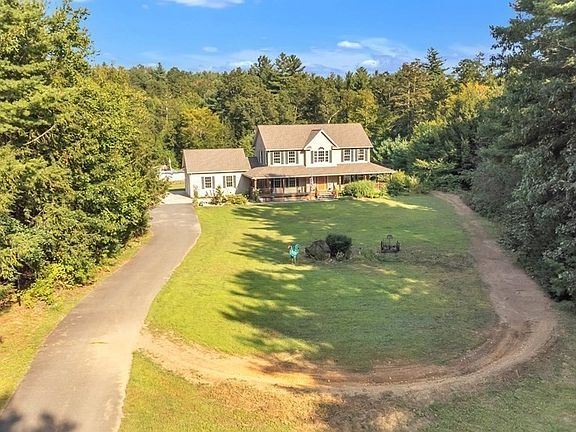 Welcome to serenity. This beautiful 4 bedroom colonial sits on a flat 3 acre lot that is almost entirely surrounded by conservation land. The home sits back with a long driveway adding privacy to the front. You can enjoy the sunrise or sunset from the wrap around porch and partake in various outdoor activities all year round because of what this location has to offer. As you enter the front door you'll notice a grand foyer, leading to either the dining room or sitting room. The kitchen has oak cabinets, granite countertops and is open to the family room. Family room is sizeable with gas fireplace and hardwood floors. The dining room has ample space to entertain, and is where the gorgeous woodwork really shines. First floor concludes with a 3/4 bath and mudroom with laundry. The primary bedroom upstairs has a walk-in closet and primary bath with soaking tub that overlooks the back yard. Basement is finished and is a great place to unwind. This one will make anyone feel at home