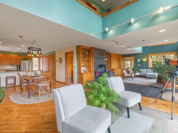 Welcome to 64 Howard Hill in the charming town of Wayne, Maine. This contemporary home is a true gem, offering a perfect blend of modern design and comfortable living. As you step inside, you'll be greeted by a beautiful living room with a wall of windows and a cathedral ceiling that overlooks the generous deck and magnificent views of Mount Washington. The natural light that floods the room creates a warm and inviting atmosphere that is perfect for relaxing or entertaining guests. The inviting kitchen is another highlight of this property, with its tile floor, eat-in dining area and a great pantry. It's the perfect space for cooking up delicious meals for family and friends. On chilly nights, you can warm yourself by the woodstove in the living room and enjoy the cozy ambiance it creates. The lovely four-season sun porch is another great feature of this property, providing a comfortable space to relax and unwind. With three generous-sized bedrooms and two and a half baths, this home has plenty of space. The primary bedroom with ensuite is located on the first floor, providing easy access and privacy. The two-car detached garage offers ample storage above and an attached heated room, making it perfect for a workshop or home office. Additionally, there is a well-built shed that is currently being used as an in-home gym. This property is situated in a lovely private location, offering breathtaking views. It's the perfect place to escape the hustle and bustle of city life and enjoy the tranquility of nature. Don't miss out on the opportunity to make this beautiful home your own.