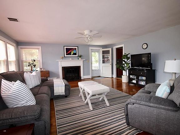 One floor living at its best, this spacious 2 Bedroom Ranch has gleaming hard wood floors, spacious fireplaced living room, Cast iron heat and generous master BR. The home sits on large corner lot with partially fenced in back yard. There is a Cozy Galley kitchen with Corian counter tops, dining room with gorgeous built in cabinets.off the dining room there is Screen porch and wrap around deck Which add to the over all out door living space!