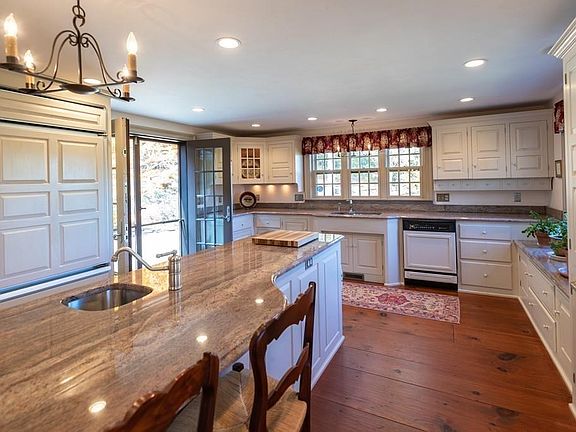 Meticulously maintained c.1760 Gambrel style with charming details that perfectly blends the antique characteristics of the home with the modern conveniences of today. Period features include wide pine paneling, impressive display of exposed post & beam frame, handcrafted woodwork, wrought iron hardware and built-ins.The heart of the home is the kitchen and this one does not disappoint. It is spacious and has gorgeous custom made cabinetry, built-ins, granite countertops, and large center island. You will enjoy serving those special meals with family and friends sitting around a large dining room table in front of the original fireplace with baking oven. In addition there is a formal dining room w/ FP and built-ins, living room w/ FP, large family room, office area, 3 bedrooms, and a luxurious full bath with soaking tub. Also included is the attached heated two car garage w/workshop and in-law apt perfect for office or studio space. Picturesque 4 acre setting, 10 min to Northampton.
