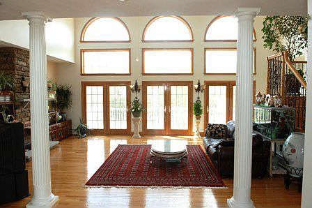 Stunning custom Colonial with striking architectural detail and quality construction located in a beautiful subdivision. Dramatic 2 Story entrance foyer leading into a breath taken 2 story high family room, dining and formal living rooms. Huge beautiful custom windows everywhere, many with stain glass, these 3 rooms include a gas fireplace, decorative columns, crown moldings, and 18' tall windows facing south to drench the home with light and natural heat. Gleaming hardwood floors throughout first and second floor. Gorgeous custom kitchen with granite counters, large island, Pantry and breakfast area. Exquisite 1st floor master suit with hot tub, 2 bedrooms on second floor include a jack and Jill bath and additional bedroom with private bath. 10 foot tall basement ceilings with walkout to ground level with many possibilities to finish if desired. Minutes to the highway, shopping mall and restaurants and a wonderful school district.