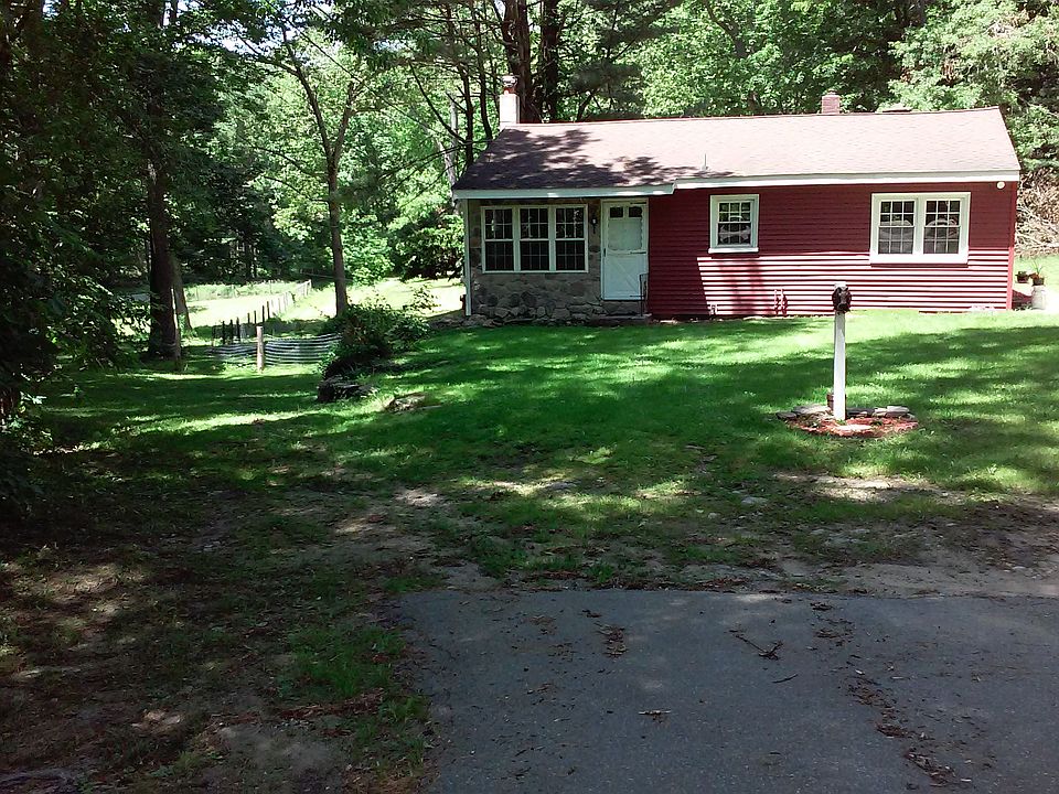 Ranch style home sitting on 3+ acres of privacy with a nice pond in the rear of the property. Home appears to have a newer architectural shingled roof, vinyl siding, updated replacement windows and updated electrical service. There are two bedrooms with closets and a possible 3rd with no closet. There is a cozy kitchen along with a fireplaced living room with hardwood floors and an additional eating space area. The basement has evidence of a partially finished basement room along with the laundry connections. Outside-there is a very large barn that appears to be in good shape with a concrete floor, water, electrical and a heating system. There are a couple of additional outbuildings for storage. Home is in the process of being cleaned out and will be sold as-is.