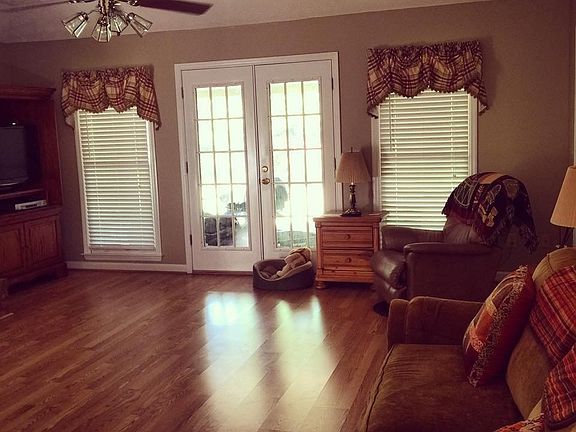 Spectacular 4 bedroom 2 bath brick home on a 40 acre lake. Large master bedroom w/13 ft ceilings and huge walk-in closet. Master bath has double sinks, garden tub w/separate shower. Beautiful laminate flooring through out. New carpet in two of the bedrooms and ceramic tile in the bathrooms. Separate dining room w/a large window. Living room has a gas fireplace w/ tray ceiling & french doors leading to a covered patio & screened in porch. SS appliances & 2 pantries in the kitchen.