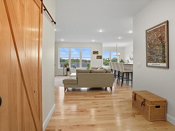 Completed in 2020, this beautifully designed home is filled with high-end upgrades and custom details throughout. Inside, you’ll find Birchwood floors, custom Birch shelving in every closet, and designer blinds by Gordon’s. The chef’s kitchen features Bosch 800 Series appliances, soft-close cabinetry with sleek black hardware, herringbone tile, and a walk-in pantry with custom shelving and cubbies. The open floor plan flows into a spacious dining and living area anchored by a freestanding gas fireplace. Step outside to a deck with sweeping mountain views and stunning sunsets, or enjoy cozy evenings around the gas fire bowl on the walk-out patio. The primary suite offers a spa-like retreat with a dual vanity, tiled walk-in shower, and a custom closet with Birch shelving, built-in shoe rack, and soft-close drawers. A charming Hickory barn door highlights the mudroom entry with first-floor laundry. The mostly finished lower level provides a large rec room, office or studio, and a ¾ bath—perfect for a gym, yoga studio, art space, or guest retreat. Located in one of South Burlington’s most desirable new neighborhoods, this home blends nature and convenience with community walking trails, a park, and quick access to shopping, dining, the UVM Medical Center, Burlington Airport, and Downtown Burlington. A truly one-of-a-kind property—move-in ready and waiting for you! Delayed showings until 09/27.