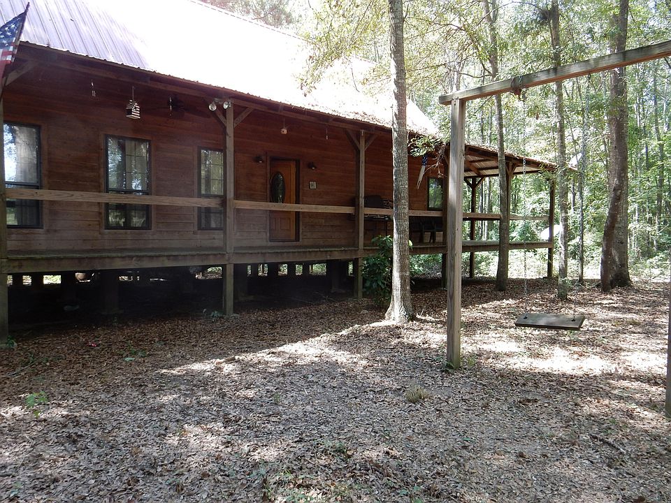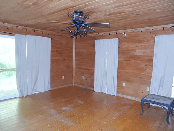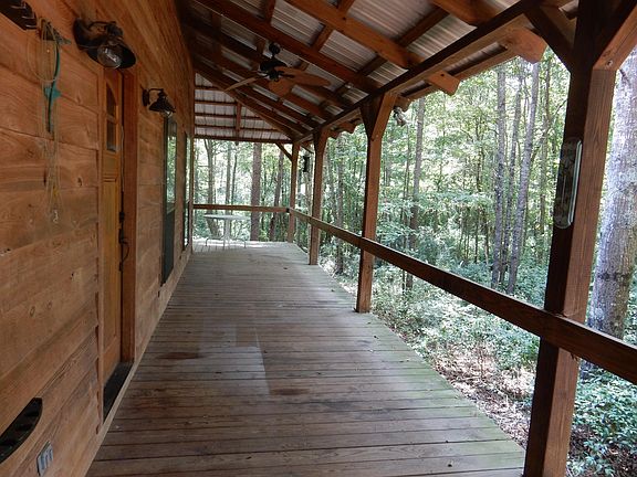 An outstanding property with plenty of privacy. Rustic house with a wraparound porch. Cathedral ceiling in living area. Master bedroom downstairs with 2nd bedroom upstairs. Also has full bath upstairs. Wood floors, walls, ceilings. This is a must see! Seller will sell more land up to approximately 7 acres. Age of house and square feet is estimated. Metal roof. Has office with separate entrance from porch.NOTE: This listing is residence/one acre that will be surveyed out of the parcel.