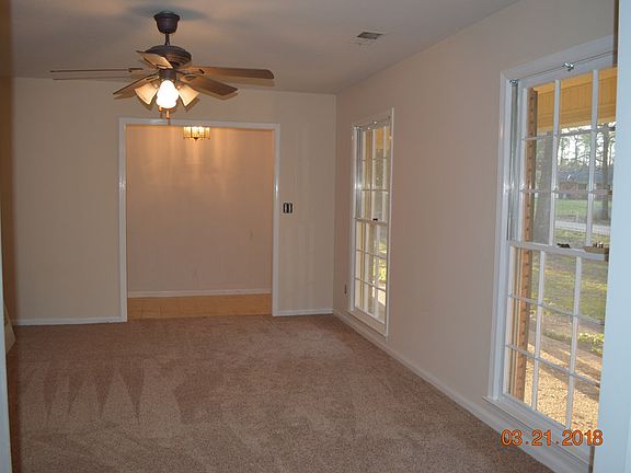 Spacious Ranch Style home, Brick and low maintenance Vinyl Siding. This is a solid home with cosmetic updates that include Fresh Paint, New Carpet, Laminate Flooring. Separate Living Room, Den, Dining Room and Breakfast Area. Master Bedroom has his/her closets. This is a 3 Bedroom 2 Bath home but 2 additional rooms could be used as a Bedroom or Office. Multiple Closets and Storage Areas. Wood Burning Fireplace in Den. Metal Roof was installed in 2003, upgraded Septic System in 2006.