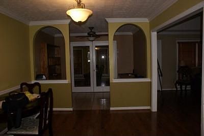 Extra large wooded lot with privacy fence in back. Located in cul-de-sac. Great floor plan with lots of room - 3 or 4 bedrooms. Extra room could be den, great room, playroom, etc. Dining room has arched openings - extra area for office or library. Large kitchen with breakfast room. Covered patio. Sunroom has multiple uses - great flow of house for entertaining. Ceramic tile, updated features - Fireplace in den - Great view of back yard!
