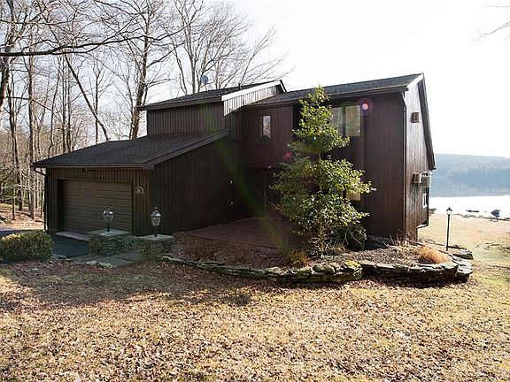Lofty-lakefront living on a double lot set amidst giant boulders, lush level yard, and soaring pines. This Cozy contemporary house may be the place for you if you are looking for a panoramic view of the Lovely Lake Joseph. This quaint home offers plenty of light with soaring ceilings and lots of windows. Sliding glass doors off the dining area lead to a multi-level deck which is the perfect spot to enjoy your summer evenings. Three bedrooms with an additional room great for a studio or office space, a wall of windows in the living area overlooking the lake, massive circular window in the center of the home gives you a great view as you head to the lower level of the home with an additional entrance for guests staying with you. Large 2 car attached garage. For those who appreciate the beauty and serenity of waterside living in a quiet small community that offers so much to do. Tennis Courts, Pool and a 250-acre non-motor boat lake. Truly tonic for the creative mind! Priced to sell!