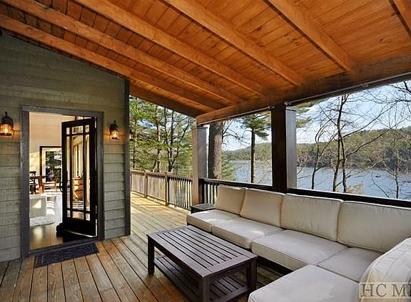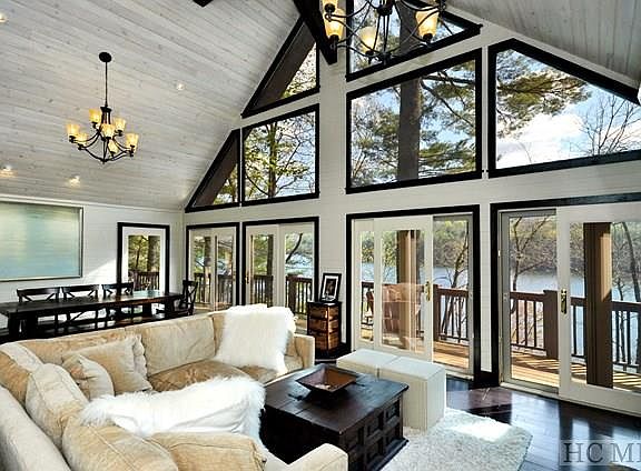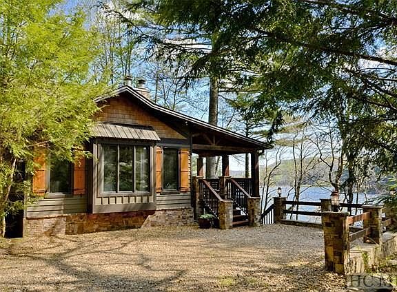 Representing lakefront living at its finest, this completely remodeled home on the east side of Lake Glenville offers spectacular views of the lake and mountains from almost all rooms. No detail was overlooked when the owners made this home like new; there is nothing left to do. Fresh style and on-trend design elements result in a sophisticated yet wonderfully relaxed and comfortable atmosphere. An integrated smart home system controls lighting, temperature, music and security from anywhere in the world. The great room is the focal point for gathering, with a wood-burning stone fireplace, cathedral ceilings and rich hardwoods. The gorgeous chef's kitchen features premium stainless steel appliances, an oversized island with seating, stone countertops and a beautiful glass tile backsplash. Have coffee in the morning or a leisurely dinner while taking in the beauty of Lake Glenville. A luxurious master suite and a second bedroom also sit on the main level, with two additional sleeping quarters and a spacious family room with its own fireplace downstairs. Upstairs, a lofted area would make a great spot for an office or art studio. A short, nearly level walk leads down to the lake from the lower level of the house. The dock is in excellent condition and sits in an area of deep water. Enjoy boating, canoeing, water skiing, fishing and swimming anytime!