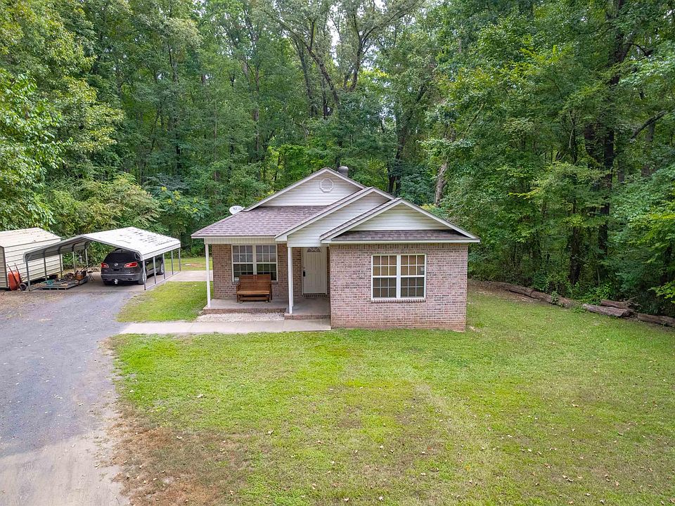 Upon entering the front door, you a greeted by a quaint living room. To your right you will enter a small corridor leading to the guest bathroom and both of the front bedrooms. Exiting the living room straight ahead you enter a very open kitchen and dinning area. To the Right of the dinning area you find the Laundry Closet tucked away out of view. Upon entering kitchen turn right to the Spacious Master Bedroom featuring a generous closet. The Master Bathroom features a Dual sink vanity, walk in shower and a Jacuzzi tub. Leaving the Kitchen from the Back door you find a Patio area next to a Car Carport and Very Generous Shed. Both of these will covey with sale of the Home. This Home is a Dream for the First time Home Buyer or the Person looking for a bit of acreage with a great home tucked away from the Hustle and Bustle of city life. Call for your Tour today.