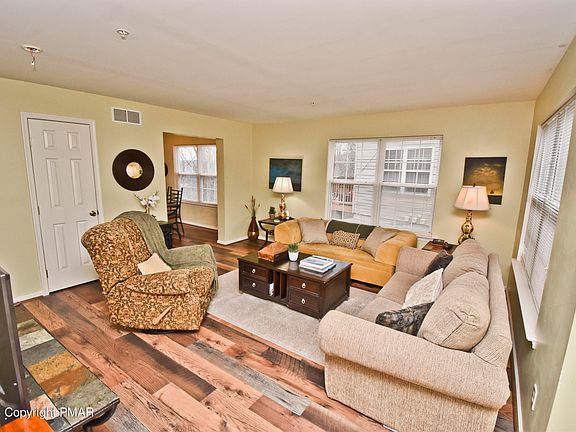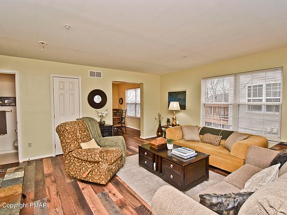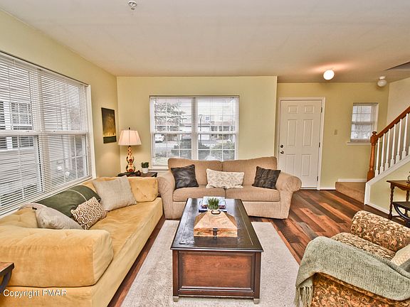 MAINTENANCE-FREE LIVING! 2bd TURNKEY End Unit Townhome nestled in a GREAT neighborhood just 10mins away from the picturesque DWG. Be greeted by a BRIGHT Living Room that flows into the Dining Area that has sliders to the deck where you can soak in the BREATHTAKING VIEWS of the Shawnee Ski Area. Imagine entertaining guests or simply enjoying your morning coffee while surrounded by nature's beauty. The well-designed layout continues into the Kitchen, offering plenty cabinet/counter space to satisfy all your culinary needs. 2nd floor has 2 great sized bds, including the Primary w/ a WALK-IN CLOSET & access to bath. This home also has a WALK-OUT BASEMENT, CENTRAL A/C, & PUBLIC water/sewer. It also boasts an excellent commuter location, providing easy access to the best the Poconos has to offer. Whether you're a winter sports enthusiast heading to Shawnee Mountain, a student at ESU, or someone who enjoys shopping & dining, this location has it all. Don't miss this opportunity!