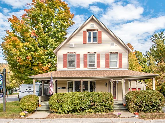 Fully renovated in 2004, with new plumbing, wiring, siding, roofing, and new kitchens and baths. This is a multi-use property offering a home, an apartment for rental income, and a commercial rental space. Situated nicely on a main street in Gorham NH directly across from the Village Park where you can enjoy all of the special summer activities. Also close by are the ATV trails, snow mobile trails, XC skiing and down hill skiing. A NEW ARCHITECTURAL SHINGLE ROOF was applied to the main house gable roof in April 2023. The old roof was removed and discarded properly. In addition, there is an attached 30x30 barn with storage closets and a 2 car garage. Original maple hardwood floors. Public water and public sewer. This is a fine opportunity and would make a great vacation home with built in rental income.