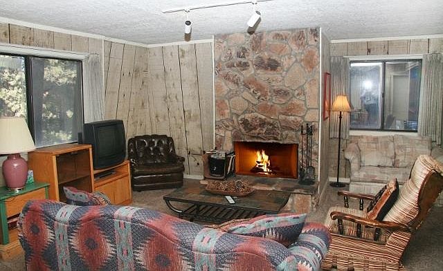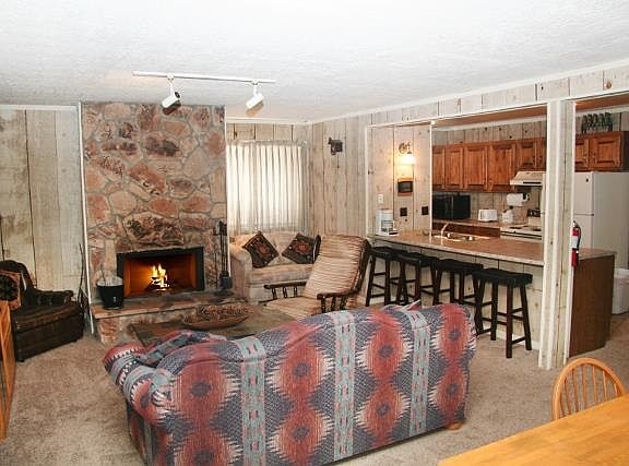 GREAT PRICE!! Spacious Two bedroom condo with large open plan living/dining/kitchen that is the selling feature of this condo. There are two bedrooms and two bathrooms. The bedrooms have access to the back deck and a large covered deck in the front has views of the forest. This unit is on the second floor allowing for unobstructed views to the forest from the deck. New kitchen counter tops, carpet and pergo style wood flooring in the entire unit. This condo is furnished and ready for you to move in and start enjoying mountain living.