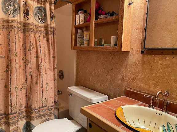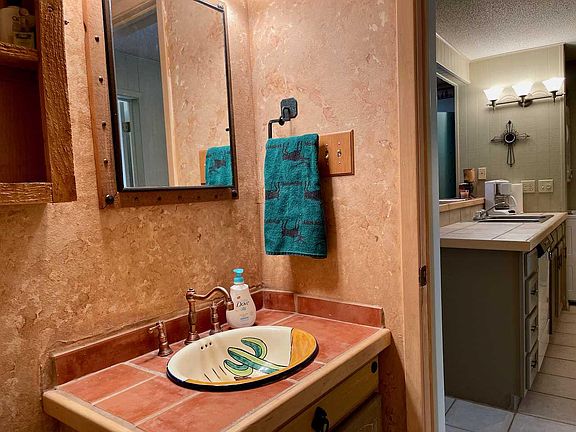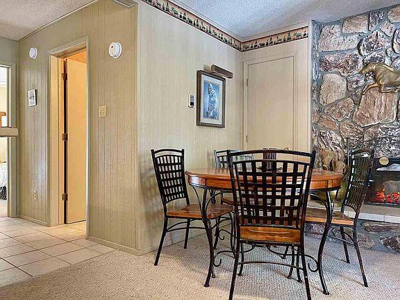 A real cozy mountain feel, this Pinetree unit is on the second floor with easy steps. A front covered porch off the living room looks out at the forest. Very cool, large rock and electric fireplace open to Living Room, Dining Area and Kitchen. Two spacious bedrooms. Master has ensuite bath. Bath off hallway serves guest bedroom and living area. In-unit stackable washer/dryer in kitchen. Covered deck off bedrooms. Complex is in a peaceful, forested area minutes from the Angel Fire Resort Chile Express Hi-Speed Quad chairlift taking you up the ski mountain and to the mountain bike terrain park. Excellent rental potential should you want to do short term rentals when not in residence. This unit has been owned by the same friends for years and has been loved and very well cared-for. Kit Carson second generation fiber-optic internet is installed in the complex and distributed by routers. Basic fiber internet service is included in COA dues as is DISH satellite TV. Very possible to work-at-home in the stress-free environment of the southern Rocky Mountains. Comes fully furnished and turn-key with the exception of two lamps. This beautiful little package is just waiting for you.
