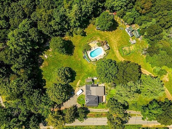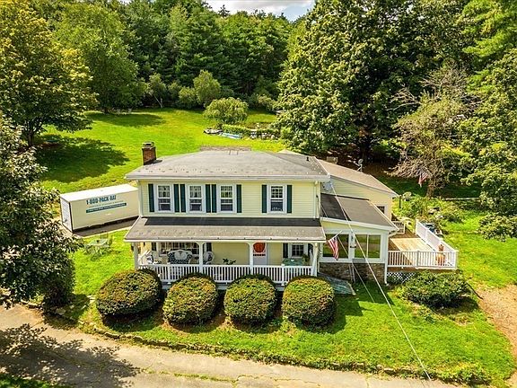 This colonial in Holland offers privacy, water frontage, and 8.5 acres of land! Enjoy all that nature has to offer between access to Hamilton Reservoir across the street (100ft of frontage) to the abutting conservation land and walking trails. A charming farmers porch welcomes you and inside you will be charmed by the beautiful wood floors throughout, beamed ceilings, built-in cabinetry, and a large sunroom with new windows. 1st floor efficiency apartment setup is perfect for in-law setup or a guest space but offers flexibility to reconnect it seamlessly as part of the main house. Backyard oasis with an inground pool while the lush greenery offers a peaceful, private setting. Great community to join with highly esteemed schools, and easy access to 84 & Rt 20. Welcome home!
