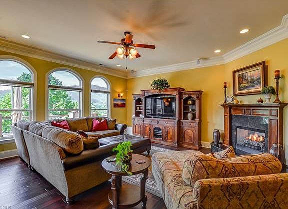 Stunning, Immaculate custom built home upgraded to the Max! Like to entertain? The screened-in porch with fireplace leads to main deck offering breathtaking sunset views! Lower level features theater room, kitchen/bar area plus- covered outdoor summer kitchen/bar and deck w/hot tub! Main level with Walnut hardwood floors, gas fireplace, crown molding, tray ceilings, 8" baseboards. Gourmet kitchen, double ovens, gas stove and butlers pantry. Zoned top-rated TC Roberson school district. Must See!