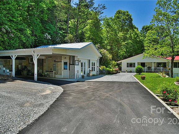 The first thing you will notice when arriving is the beautiful park like setting with lovely gardening areas, manicured lawns and an inviting covered front porch. The home includes a 676 sq. ft. artist studio with separate electrical service and propane, currently rented month to month. This is a very private setting but still convenient to to all that Black Mountain has to offer. The home features 3 Br, two bath, open kitchen, Sun room and spa room all on one level. Whole house backup generator and a fully encapsulated basement and crawlspace for lots of extra dry storage. This well loved home must be seen to be truly appreciated. Great Short term rental possibility.