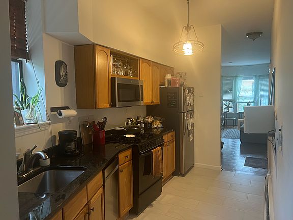Fantastic location, 3 blocks from Grove Street Path Station. This beautiful 1 bedroom, 1 bath apartment with a private deck in a charming brownstone building is flooded with natural light. There is a window in each room including the kitchen and bathroom. The south-facing living room has beautiful bay windows with wooden blinds, exposed brick feature wall, high ceilings, recessed lighting, and a dining area. The kitchen comes equipped with a gas range, dishwasher, new stainless-steel fridge, granite counters, and wine rack. Bathroom renovated with new flooring and vanity. Retreat to your king-sized bedroom, which overlooks a private deck, includes his and her closets, a dedicated office area and comes with a high-grade Friedrich AC installed in the window. Additionally, you won't run out of storage space, the apartment has 5 custom closets (many with flexible ELFA shelves), including two in the bedroom, plus loft storage. The building has laundry in the basement. Pets allowed with owner's permission Lease term: 24 months REQUIRED Lease start date: July 21st, 2025 Rented by Owner, no broker fees. Move-in Fee: $100 Please message via Zillow to schedule an appointment for the showing on Saturday, May 31st between 11am-3pm. Owner pays for Water, Trash, Snow Cleaning Tenant pays for Electric, Gas