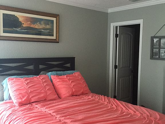 Three bedroom, two bath home close to Moody AFB! This home features an open, split bedroom floorplan. The vaulted ceiling in the living room makes the space feel spacious and open! The galley style kitchen opens to the living and dining area and features an eat-in bar! The master suite features trey ceiling, large walk-in closet, double sinks, garden tub, separate shower. The secondary bedrooms are spacious and have ample closet space. But wait until you see the back yard! It has a privacy fence, fire pit and large wooden deck that overlooks the pond!