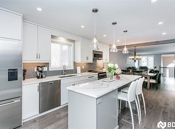 Beautifully renovated 2274 sqft home with income potential in a great location. Custom kitchen with quartz countertops, high end stainless steel appliances, and good sized island with bar stools to enjoy a quick meal. Bright open concept living and dining area. High end finishes including large baseboards, engineered wood flooring, pot lights, and exposed beam. 2 bedrooms including a large master with updated ensuite. Recently renovated basement perfect for the in-laws with separate kitchen, bathroom, bedroom, den/offoce and laundry area with a separate entrance. Large deck in the rear yard which is fully fenced with green space on one side. Very private back yard with lots of space. Brand new roof (2018) with 50 year warranty. Sought after location close to schools, Barrie Country Club, Barrie Sports Dome, East Bayfield Community Centre, Georgian Mall, Georgian College, RVH, all shopping on Bayfield St, and quick access to highway 400. 2019-08-28