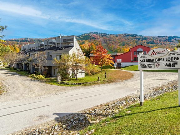 Welcome to Magic Mountain! This beautifully remodeled trailside condo has three bedrooms, two bathrooms and is offered fully furnished. Step into the mudroom, where you will find tile floors, ample storage space for skis and gear and a convenient laundry closet. The kitchen has beautiful soft-close cabinets, stainless appliances and a breakfast bar, and opens to the dining area and living room where you are instantly greeted with views of the ski slopes. The wood fireplace keeps the place cozy. There is a second entryway which has a half bath and leads up the stairs to a spacious primary bedroom suite with full bathroom and private deck. Two more bedrooms and a full bathroom complete this level. There is a third level with a loft area and reading nook. Perfectly positioned at the bottom of the red line, you can watch the skiers right from the back patio. Truly a ski in/ski out condo! Showings Oct 12 & 13 from 10-12 only