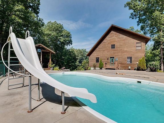 Once in a lifetime you find a property, 10 minutes from town, with complete privacy, no restrictions, a beautiful view, private pond, oh.....and did I mention it has a custom mountain chalet on it with a 2 car detached garage?!! Home boast 1 bedroom, 1 bathroom on the main, 2 bedrooms and 1 bathroom with tile, jetted tub and dual vanities on the 2nd floor, and the coolest man cave with TV room, game room with bar, additional office, and bathroom in the basement. The 2 car garage has an adjoining pool house with storage/tanning room and bathroom. The underground pool features a slide and tiki bar with waterfall accent. Total unrestricted privacy, approx. Additional acreage available.