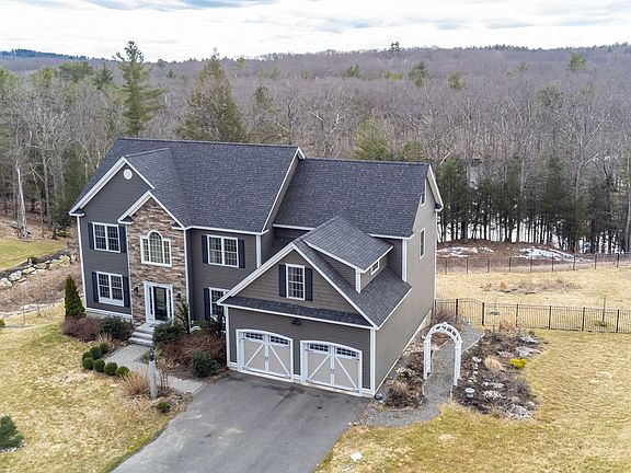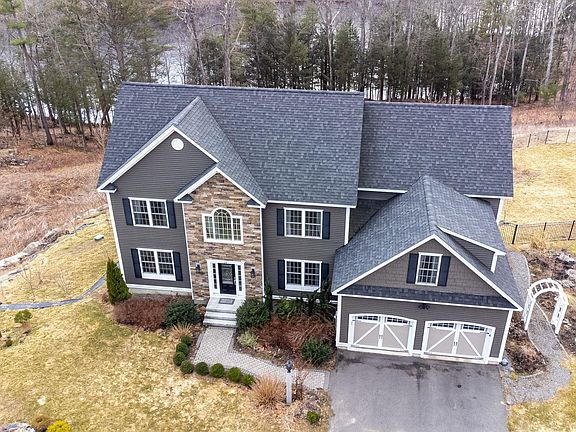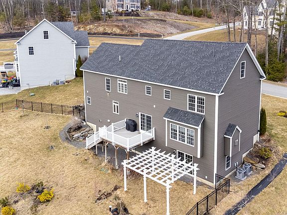 Now available this 4 Bedroom Colonial Home in Spruce Pond Estates overlooking and abutting 64+ acres of conservation land with pond views. This home was built in 2016 with tasteful, traditional colors & décor. The 29 foot eat in kitchen offers a center island, granite counters & stainless steel appliances. The adjacent family room offers views into the back yard & conservation land with a gas fire place. French doors open into the formal dining room with wood floors, trayed ceiling & picture frame moldings. A 1st floor office/den completes the 1st level floor plan. A turned wood staircase accesses the 2nd level with 4 bedrooms & a separate laundry room. The primary bedroom with ensuite offers tiled shower with dual shower heads & tiled bench. A bonus room off the bedroom works for a private office option or workout room. Wood floors were recently installed throughout the 2nd level. A full walk up attic and walkout basement offer lots of storage and potential for expanded living space. Take in the views of the pond from under the pergola in your back yard! Lots of mature landscaping including fruit trees, lots of perennials & specimen trees. Back On the Market (buyer withdrew prior to inspections)