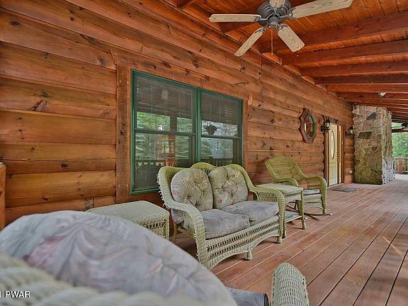 Meticulously maintained, beautiful log home in the amenity filled Hideout Community. This home features an open floor plan with large living area, with dining and kitchen. The kitchen is made for a chef: plenty of cabinets, 2 ovens, gas range, and more. There is a bedroom and bath and laundry on main level. Home can suit one level living if necessary. The master suite is upstairs, with another full bathroom. The loft area can be used as another sleeping space for guests. The basement is unfinished but ready to be finished w/ rough plumbing for a future bathroom. There is an oversized 2 car garage, attached to the home. The attention to detail in the woodworking is apparent. Large deck wraps around the house, partially covered and partially open. Being sold with most contents! Come now!