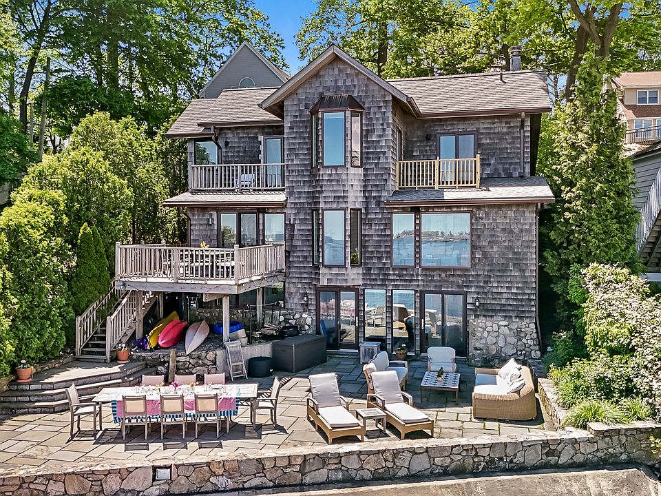 Waterfront living at its finest. Situated directly on the Long Island Sound, this 4+ bedroom, 4-bath residence offers 75 feet of sweeping, unobstructed frontage-placing the shoreline quite literally at your doorstep. At low tide, a private sandy stretch emerges, creating a beachfront setting ideal for launching kayaks, paddle boards, or mooring a boat.  Inside, light-filled interiors flow effortlessly from an open, updated kitchen to spacious entertaining areas, all designed to maximize the water views. Each of the four full baths has been thoughtfully renovated with a timeless design, blending sophistication and comfort. Outdoor living is equally inviting with a bluestone patio, and a seawall. A detached two-car garage provides convenience and storage.  Life in Shippan offers the perfect balance of seaside serenity and city accessibility. Stamford's vibrant downtown-with its restaurants, shopping, and cultural events-is just minutes away, while Shippan itself remains a quiet, intimate neighborhood where the sound of waves sets the rhythm of daily life. And with the Metro-North train whisking you to Manhattan in under 50 minutes, the home is perfectly suited for both full-time living and a weekend escape.  64 Ocean Drive East is more than a residence-it's a rare opportunity to enjoy the tranquility of a waterfront retreat with all the energy of city living within easy reach.  Listing agent is related to seller.