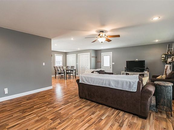 WOW is what comes to mind with this terrific ranch that has been updated throughout. Large, spacious open floor plan is rare in this price range. Features include solid surface floors throughout except bedrooms, recessed lighting in main living area, large updated bathroom, many new windows, new furnace and water heater, new siding and gutters, oversized 2 car garage (new garage roof), new fenced, large backyard. All appliances included! A must see to appreciate!