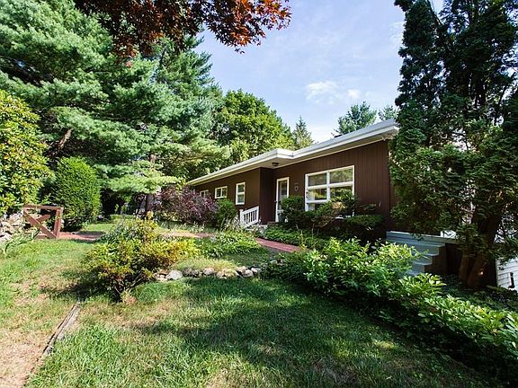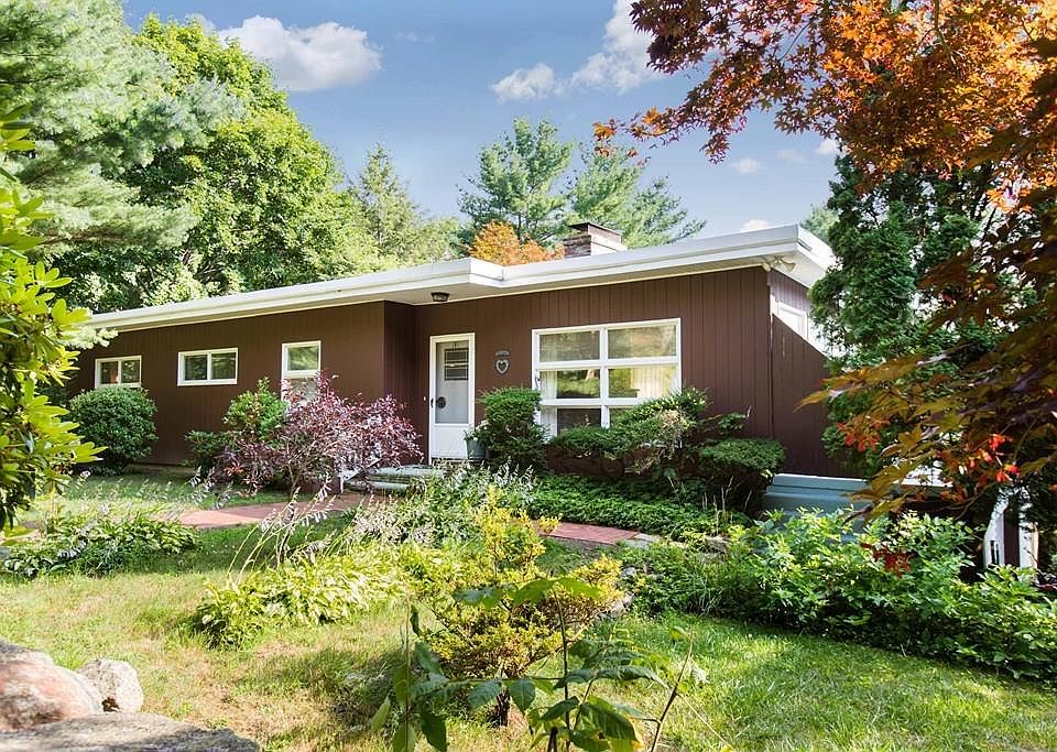 Classic Mid-Century Modern One Level Ranch located in North Smithfield. This is truly a special home with details that you rarely see. This home was designed and built by Roger Powell who was a famous RI artist and architect who embraced the architectural elements of the mid century design. This is a home designed to let in an abundance of natural light and to be one with nature via the windowed walls. The artist even left his mark on the mural he painted on the kitchen cabinets. The living room is a spacious front to back open design with stone fireplace and an area off the side for dining. Guests will be wowed by the curved wood rail with Plexiglas. All 3 BR and main bath are on the main level. The Master BR features a Master Bath and views of nature outside through the windowed wall. One particular exciting element is the wrap around patio with views of the spectacular grounds. This patio area and view to the terraced yard has a Hollywood feel! On lower level is 950 SF of living are