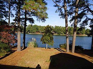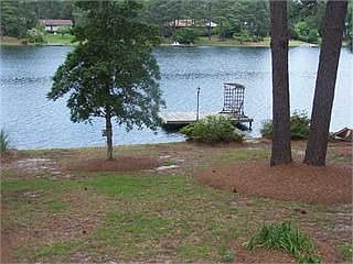 All brick 3 bedroom 2 1/2 bath home in desirable neighborhood of Whispering Pines. Enjoy this spectacular view of Spring Valley Lake from the Carolina Room or deck. Living room has hardwood floors, brick fireplace, built in shelves. Updated kitchen with Viking Range, Plantation Shutters, Septic Tank pumped new leach line, new Heat pump 2011, Sod in front lawn. Garage with built in cabinets, work shop utility sink, Private backyard with bulkhead and dock. Excellent School District.