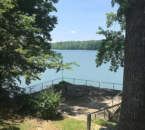 Parker Creek cabin with a great view of the Lake. Open vaulted greatroom with open concept to kitchen. Easy to move it now and lots of add on possibilities. Separate storage area behind the cabin; old concrete boathouse with a large and perfect patio.