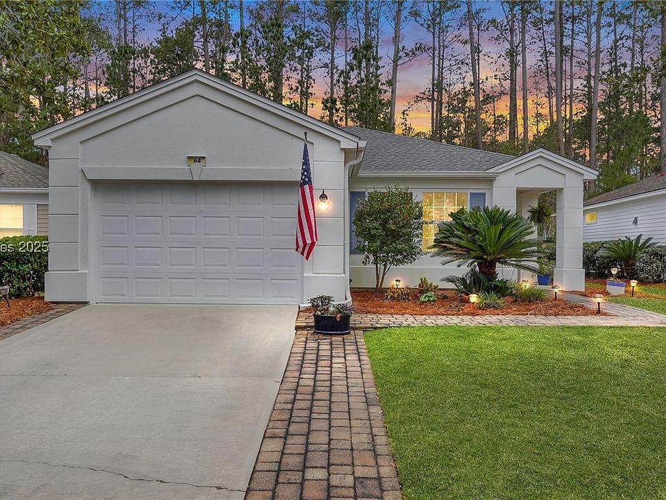 Nestled in the sought-after Sun City Hilton Head Community, this charming UPDATED Adirondack model boasts 2 BD/ 2 BA, & a versatile flex/office space. The heart of this home is its beautifully updated kitchen, a chef's paradise w/ stylish countertops, an eat-in nook, & a spacious island perfect for gathering. The open-concept living area flows seamlessly onto a cozy patio, ideal for BBQing, all with serene wooded views. Enjoy peaceful mornings w/ coffee or a good book. This home includes basic lawn care, and the community offers over 150 social clubs and activities like golf, tennis, pickleball & much more. Southern living at its finest!
