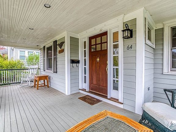 Come fall in love! This 1939 charmer has a fabulous front porch to savor Summer nights in the neighborhood. Welcoming entry hall. Front to back living room with fireplace. Dining room with built-in shelves and a unique (and pretty!) turned staircase separating the eat-in kitchen. A full bath and 3 season porch complete the main level. The second floor addition features three nicely sized bedrooms with generous closets, including a primary with cathedral ceiling, and a modern full bath. The lower level offers laundry, storage, newer furnace and hot water tank, plus a finished room with fireplace and a fun playhouse/hideout. But the coolest thing of all – an actual tunnel connecting the house to the oversized two car garage! See it to believe it! The perks don’t end there – enjoy the outside patio, fenced yard and super location - close to Needham center, commuter rail, highways, stores, restaurants and more. This property has endless potential, but it's a winner as-is!