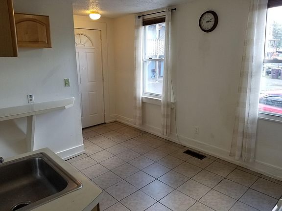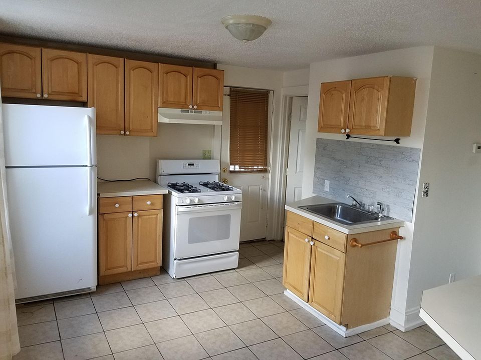Very small two bedroom two story townhouse-like unit in a SMALL side by side two family house. NO SMOKING. 580 sq feet. Separate porch entry, eat in kitchen, very small living room with closet, and full bathroom with tub shower on first floor. Second floor has two small bedrooms. Off street parking for one car. No laundry facility. The bedrooms will not fit a king size bed. This unit is appropriate for only 2 persons, 3 at the most. Available now. Tenant pays own gas heat/hot water, and electric