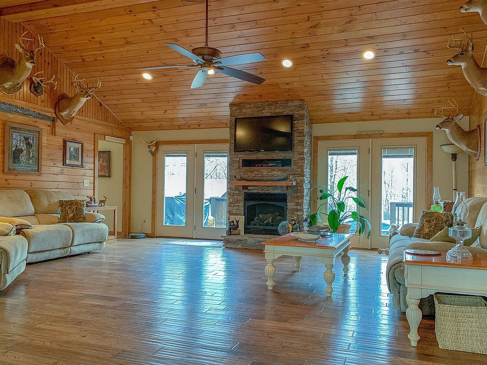 THIS RUSTIC BEAUTY IS NESTLED AWAY ON ALMOST 8 SECLUDED ACRES EXPLODING WITH WILDLIFE & NUMEROUS NATURE TRAILS. THIS TASTEFULLY CUSTOM DESIGNED HOME HAS ALL THE BELLS & WHISTLES INCLUDING GRANITE COUNTERTOPS,HANDCRAFTED WOOD FLOORING, CUSTOM CABINETS,CUSTOM BLINDS, STONE GAS FIREPLACE, PINEWOOD WALLS & CEILINGS, TILED WALK-IN SHOWER W/DOUBLE SHOWER HEADS, HOT TUB. POOL, LARGE DETACHED GARAGE, OVERSIZED DETACHED CARPORT AND TIM'S FORD LAKE IS JUST A SHORT WALK AWAY!