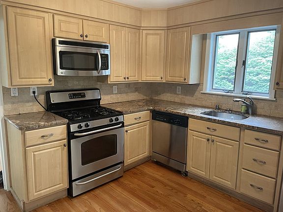 Lovely colonial located on corner property next to bird sanctuary. This home offers 4 bedrooms, 2 full baths, living room with wood burning fireplace, dining room, family room/den, kitchen with granite countertops, SS appliances and breakfast nook with sliding doors leading to a beautiful backyard with deck and a built-in heated pool for your summer enjoyment. Hardwood floors throughout and a finished basement Tenant pays, oil, gas, electric, water, sewer, cable, lawn maintenance, snow removal, pool maintenance including opening and closing of pool. A small pet will be considered