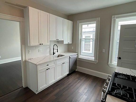 Available July 1st - Brand New Luxury Renovation! 4 beds 1.5 baths - high end kitchen with quartz counters, stainless steel appliances, hardwood floors throughout and private deck! Common laundry. Right next to Ronan Park, just minutes to Fields Corner T Stop, 93, Target and multiple grocery stores. Off street and garage parking available. Pictures are of the construction in progress and are scheduled to be completed by June 1st. Will have brand new/just refinished hardwood floors & stainless steel appliances (not pictured)!