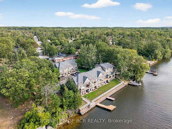 Set within a private gated community along the Nottawasaga River, this 2 bedroom, 2 bathroom waterfront townhouse condo offers a rare blend of sophistication, versatility, and lifestyle. Equally suited as a full-time residence, a refined vacation escape, or a luxury investment property, it embodies the essence of elevated living. The main level is designed for effortless flow, with a spacious open concept kitchen, dining, and living area enhanced by a fireplace and framed by expansive windows. Natural light fills the space, while a walk-out to the 25-foot balcony provides a striking vantage point over the river. A generous main-level bedroom and stylish powder room complete this floor. The lower level unveils a private retreat, with a serene primary suite featuring a custom walk-in closet and a 4 piece semi-ensuite. The inviting recreation room opens onto a covered patio, offering uninterrupted views of the river and neighbouring provincial park. A cold cellar adds practical storage without compromising style. This prestigious community further enriches the experience with 15 ft boat slips and the opportunity to install a private dock, creating a seamless connection to the water. Secure gated entry ensures peace of mind, while the short walk to Beach Area 1 blends seclusion with convenience.