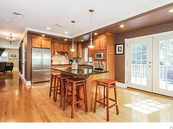 Stunning whole house, quality recent renovation. Sunny and bright with spacious open floor plan. Four bedrooms and four full designer baths. Custom kitchen with French doors out to new deck overlooking level landscaped property. Walk out lower level has private bedroom and full bath. Spacious master bedroom with vaulted ceiling, walk in closets and luxurious master bath with claw foot tub and oversized shower. Architectural details including custom windows and moldings throughout. Wonderful location with easy commute and organized neighborhood social activities.