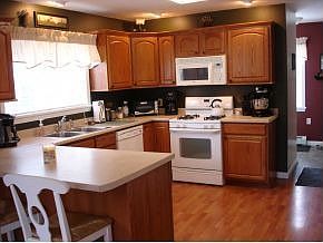 Absolutely sweet contemporary cape tucked away on a beautiful lot overlooking woods. Pride of ownership is evident throughout this well maintained one owner home. Open first floor with laminate floors, oak kitchen with crown, gas stove, and breakfast bar. Mudroom off garage with ?? bath, finished walk-out lower level with pellet stove, large master bedroom, and bonus 8x10ish unfinished room with window off master for future expansion (another closet or office?) Beautiful rolling lot with nice landscaping abuts quiet woods to complete the country setting.