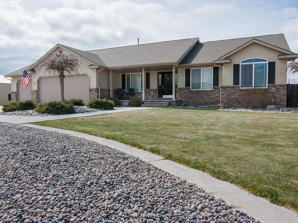 Beautiful newer home with a shop in a top notch county subdivision!! Youll start to notice the extra upgrades in this quality custom home as you pull up. The circular drive is lined with concrete curbing and the front entry is preceded by a large sitting porch and colorful flower gardens. Just off the entry way is a formal living room with a custom finished archway. The kitchen, dining, and family room are all open allowing a nice flow for gatherings and day to day living. Downstairs offers more upgrades including wrought iron railing, separate workout/office area, a kitchenette with sink, fireplace with full rock surround. The home also has 6 bedrooms and 3 full baths including a large master suite. Youll also enjoy the exterior amenities like a 30*50 shop, RV parking, covered back patio, fully fenced yard, sprinkler system, a 3 car garage +1 extra deep stall/workshop, and the large playground equipment.