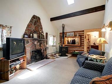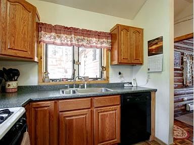 This cozy log cabin is nestled in a quiet neighborhood just 1/2 mile from Hwy 285. Level usable 1/2 acre. Detached garage + a large wood shed. Property has very small bedrooms, nice sized great room with vaulted ceilings. Wall between kitchen and bedroom 2 was added to create another small bedroom but could be opened up easily. Major mechanical systems have been updated. This historic property has roots back to the Civil War. Driveway is paved. School bus stop at end of the road.