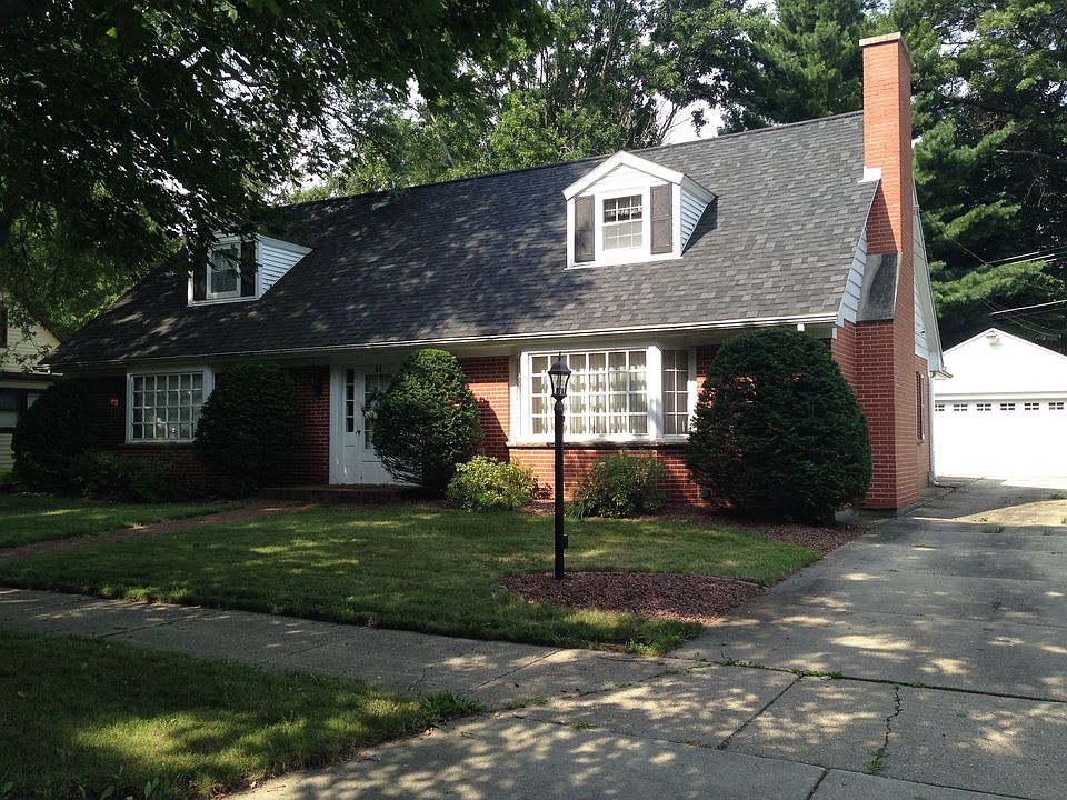 Lovely, well-built brick Cape Cod home on quiet street of lovely homes. Wide front entry hall. Spacious rooms - LR w/hwd. floor & gas FP, formal DR w/hwd.floor + eat-in kitchen w/tile floor, bay window, built-in stove & cooktop; many custom storage cabinets. Gorgeous 4-season sunroom with vaulted ceiling & tile floor. First floor stacked laundry. Master BR with two large closets and hardwood. 2nd large BR on first floor. Remodeled 1st floor bath w/heated tile floor. First floor laundry. Large hwd. floor landing at top of stairs with skylight and closet. Walk-out attic. Newer 2nd floor bathroom with tub/shower and heated tile floor. Huge upstairs bedroom with vaulted ceiling, wic, window seat & built-in desk. Beautifully finished LL rec room with wet bar bar, gas FP, built-in cabinets & 3/4 bath w/tile floors. Nice back yard with brick patio, newly built deck, and new privacy fence.